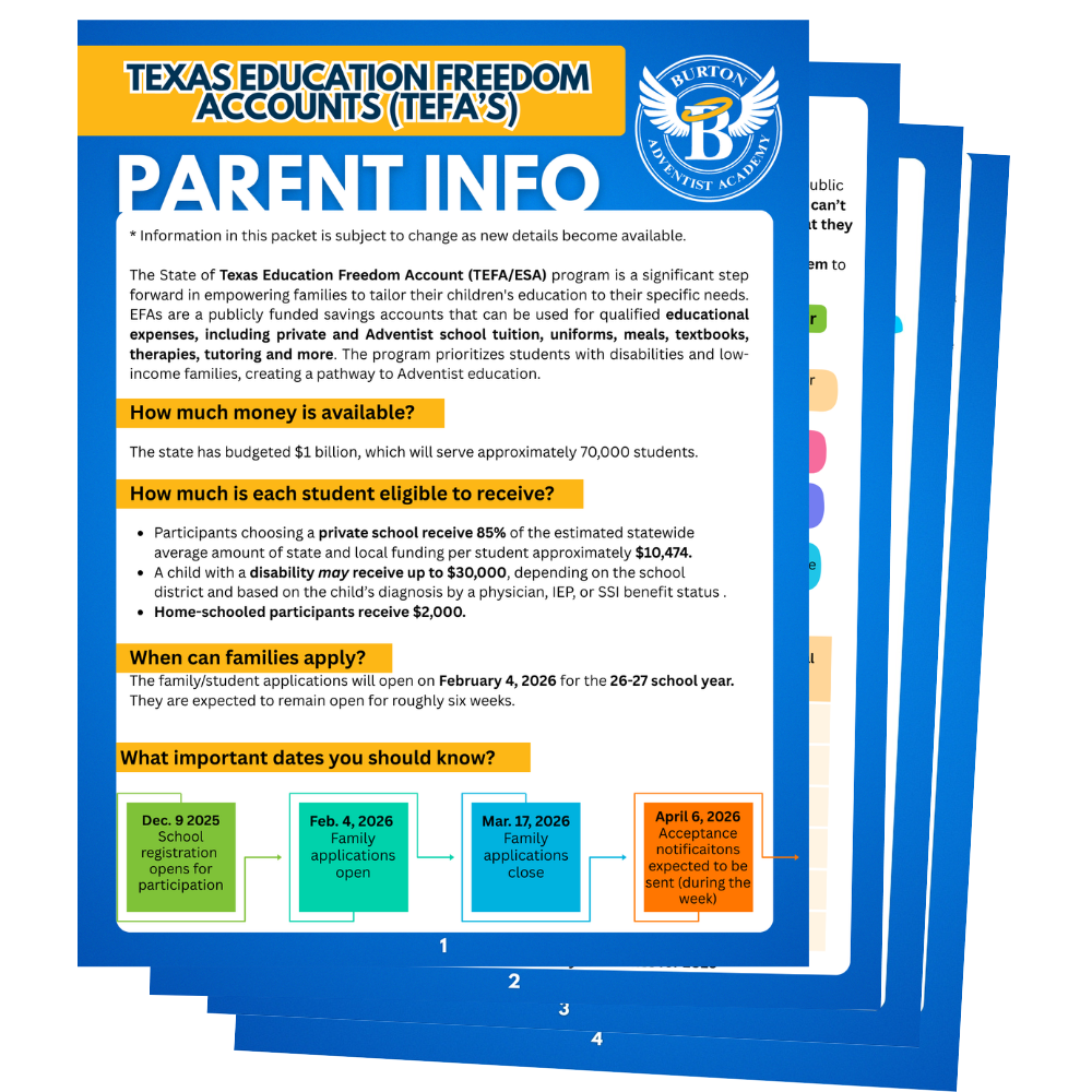 We want to ensure that families looking for information about the Texas School Choice (SB2) Bill and the brand new Texas Education Freedom Accounts can access the most up-to-date and helpful information possible. So you’re definitely in the right spot! If you can’t find what you’re looking for or have questions that remain unanswered, don’t hesitate to reach out as we are here to help you navigate this new and exciting opportunity for families seeking to better afford private, Christian education for their children.